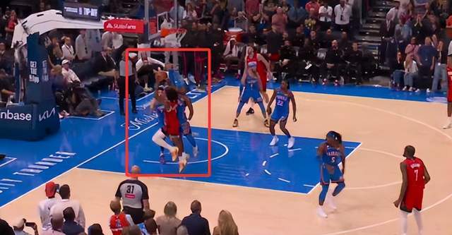 這次進(jìn)攻亞歷山大和阿門手臂發(fā)生接觸,影響了進(jìn)攻方投籃動作,屬于防守犯規(guī),這一球被漏吹了。而阿門當(dāng)時本該獲得兩次罰球機(jī)會,但裁判哨聲并沒有響。當(dāng)時火箭僅僅只落后兩分,這兩次罰球是很可能左右比分的。